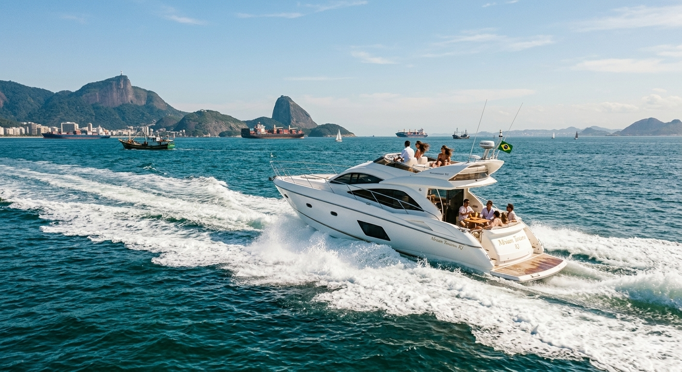 Esqueça o trânsito e as estradas. A sua jornada rumo ao paraíso começa no mar, com a exclusividade que só a Miriam Turismo RJ oferece.