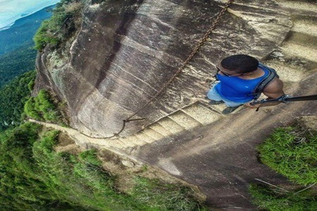 Mas essa história tem um detalhe, apesar da homenagem, o rei era um experiente montanhista, e achou um absurdo fazer a escadaria na pedra. Ele preferiu subir pela rocha e descer pelo costão, que é uma trilha com alto nível de dificuldade.